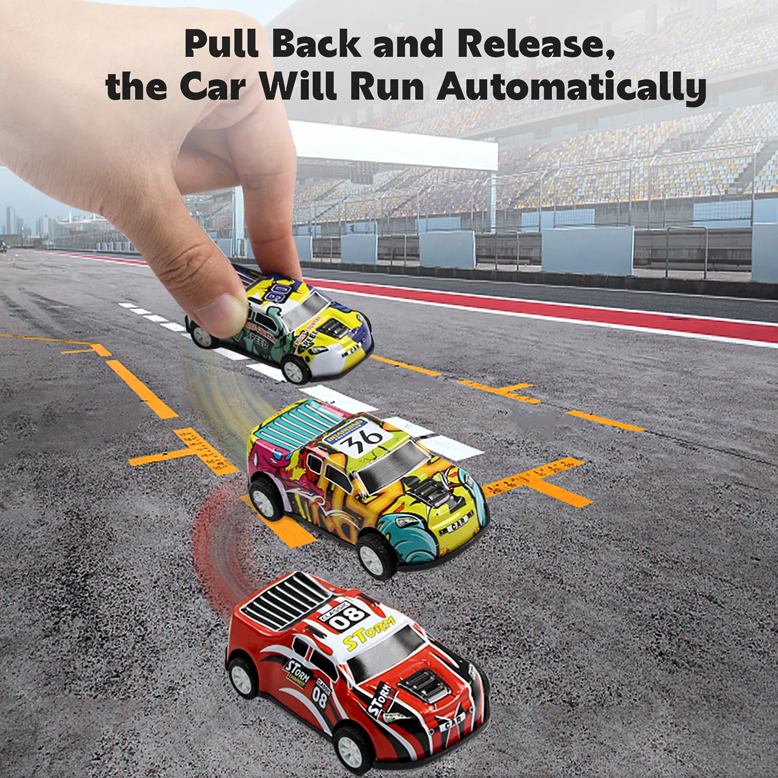 - 【Require No Batteries】: The pull back vehicle is easy to play and full of fun for children, as it can be pulled back and go without batteries.