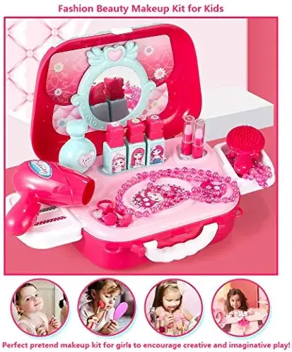 This toy makeup kit set is designed for children aged 3 and up and is made of high-quality, durable materials. The makeup items are easy to apply and remove, providing a hassle-free and enjoyable experience for children.