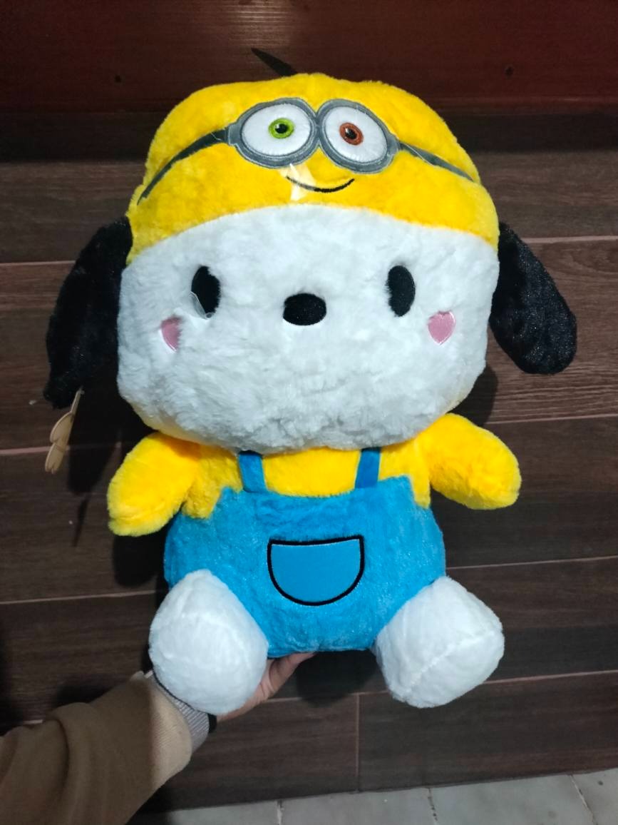 Get ready to fall in love with the Minion Cosplay Pochacco Plush Toy, an adorable fusion of Sanrio’s lovable Pochacco and the playful Minions! This unique plush toy features Pochacco dressed in a charming Minion-inspired outfit, making it a must-have for collectors and fans alike. Whether you’re a Sanrio enthusiast, a Minion lover or simply someone who adores cute plushies, this cute crossover plush will bring joy and excitement to your collection.
